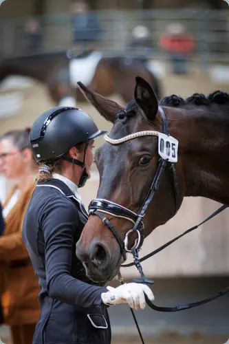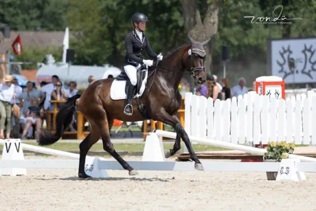 Königsgala ist eine großlinige, großrahmige Stute mit guter Dreiteilung. Sie verfügt über drei sehr gute Grundgangarten. Bei guter Kraftentfaltung weiß sie sich ausdrucksstark und schwungvoll zu bewegen. Die Stute ist leistungsgeprüft. Sie legte ihre Prüfung 2024 als Siegerin ab. Für den Trab, Galopp und die Rittigkeit erhielt sie die Note 9. Ihr raumgreifender Schritt wurde mit einer 8,5 belohnt. Beim Freispringen zeigt sie Mut, Leistungsbereitschaft sowie Vermögen (Note 8).… weiterlesen