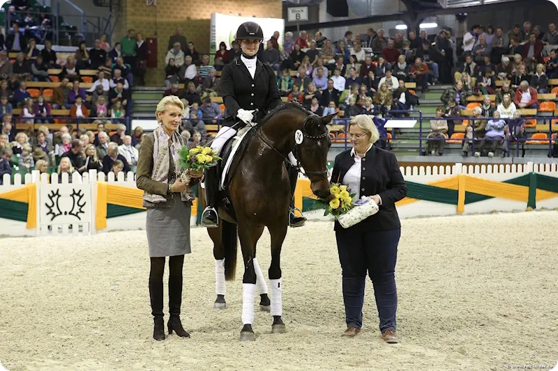 •*21.03.2010•Farbe: Braun•Stockmaß: 168 cm•Bewertung: 8 8 7,5 / 8 8 7,5 / 8 (Z)•SLP: 7,82 in Hohenahr 2015•Zuchtleistung: 7 / 7•Leistungsstutbuch der FN: A / D
