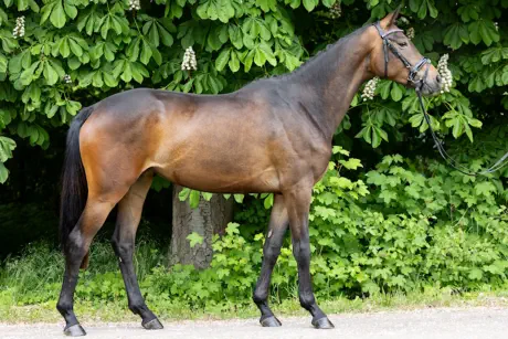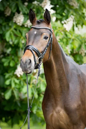 Geb.:25.05.2022Farbe:BraunStockmaß:167 cmAusbildungsstand: angerittenErfolge:Prämienfohlen der Fohlenschau 2022 in Elmarshausen.
