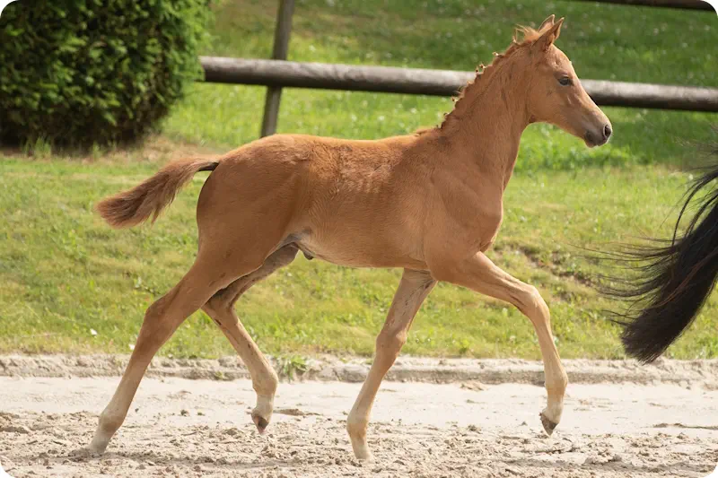 •*11.04.2021•Farbe: Fuchs•Stockmaß: 164 cm•Ausbildungsstand: geritten•Erfolge: Prämienfohlen beim Nordhessischen Fohlenchampionat 2021Mit der besonderen Note hoher Eleganz bewegt sich unser Zauberkomet. Der erste Sohn aus der noch jungen Vererberin Zaubernote punktet mit Körperharmonie und einer natürlichen Leichtfüßigkeit. Er verfügt über ein hohes Maß an Takt in der Bewegung, besonders sein Schritt ist ausgezeichnet. Zauberkomets freundliches Wesen ist bemerkenswert und macht den Umgang mit ihm einfach. Sein Vater E.H. KASIMIR TSF brachte in Kombination mit unserer „Zauberfamilie“ bereits den S-Dressur erfolgreichen Zauberstern und die Fuchsstute Zaubermarie, die in der Dressur Kl. M platziert ist.